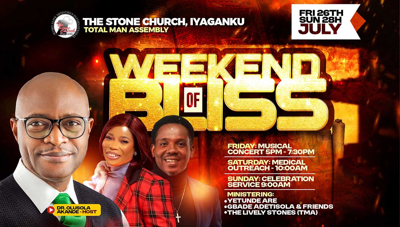 Start your journey with an evening of anointed music and worship. Our Musical Outreach will feature gospel greats Yetunde Are, Gbade Adetisola & Friends, and our own choir, The Lively Stones. Let the melodies and praises draw you closer to God and ignite your spirit.